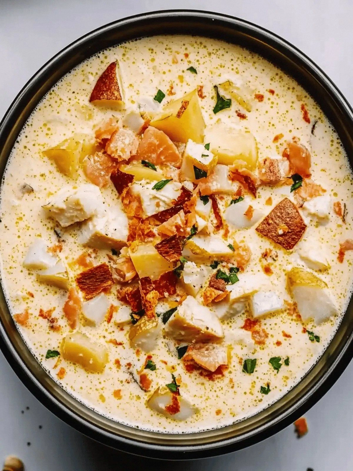 - Texture: The fish flakes into tender, almost buttery pieces, while the potatoes provide a creamy yet slightly firm bite that keeps the chowder from becoming mushy.