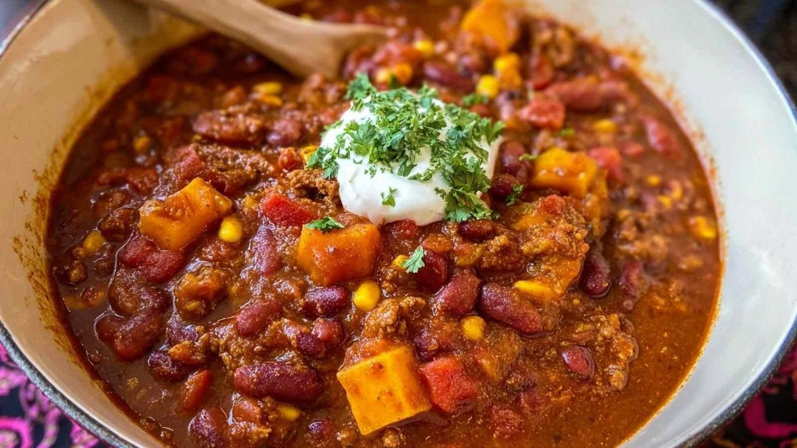 Add a handful of toasted pumpkin seeds and a drizzle of maple syrup before serving. The nutty crunch and subtle sweetness elevate the chili to a gourmet level.