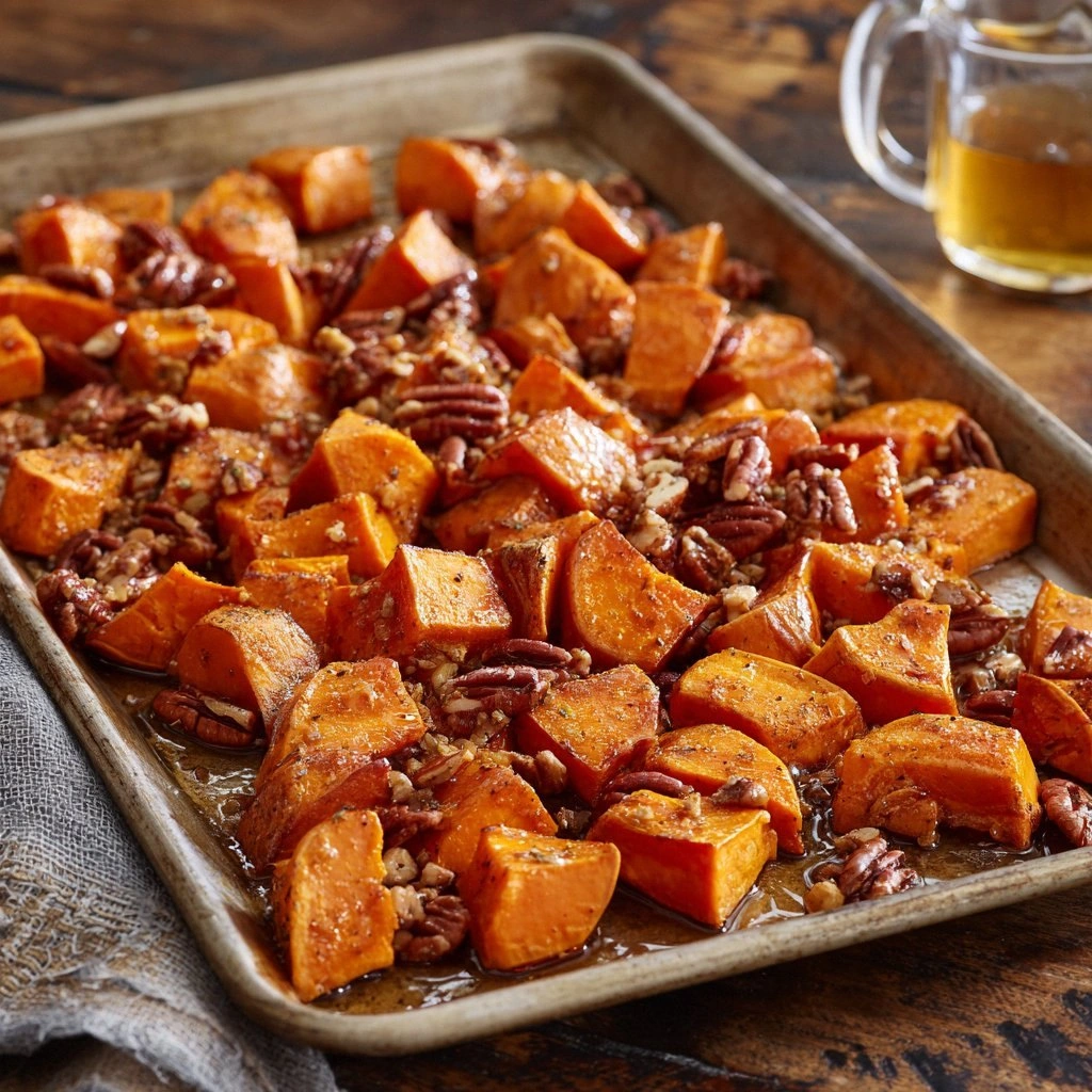 My kitchen is a chaotic symphony: the sizzle of oil, the clink of a wooden spoon, the soft hum of the oven preheating. The sweet potato cubes hit the pan, releasing a faint scent of earth that quickly turns into caramelized sugar. The maple syrup glistens, catching the light, while the pecans add a deep, buttery crunch. I dare you to taste this and not go back for seconds. The first bite is an explosion of flavors—sweet, salty, nutty, and a subtle spice that lingers on the palate.